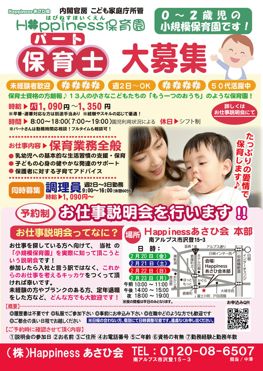 2/20、21、22、23開催◇Happiness保育園 パート保育士・調理員大募集